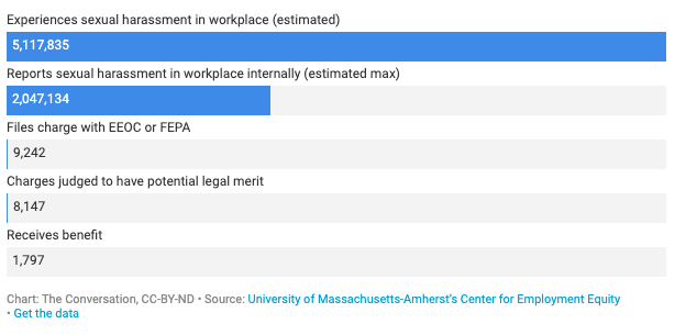 Nearly all sexual harassment at work goes unreported -- and those who do report often see zero benefit